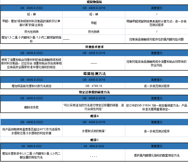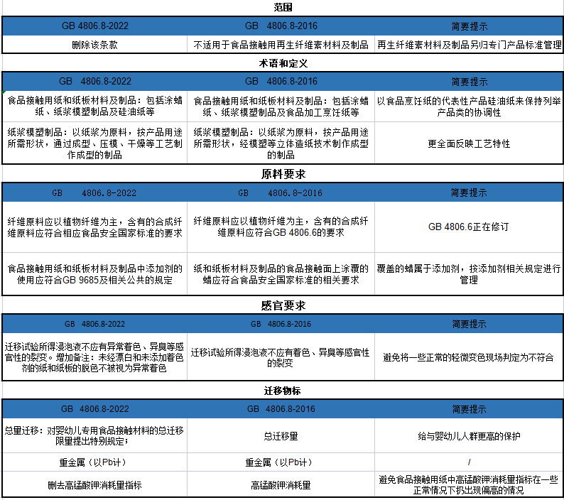 其中,GB4806.8-2022《食品安全國家標(biāo)準(zhǔn) 食品接觸用紙和紙板材料及制品》正式發(fā)布,并將于2023年6月30日起正式實(shí)施。