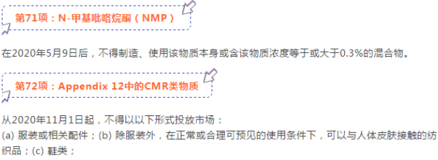 2020年REACH法規(guī)將有6項限制條款生效,詳細如下: