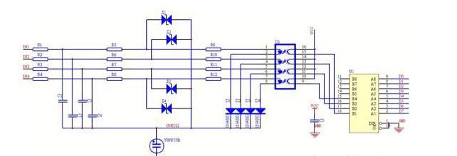 采樣電路的原理圖設(shè)計(jì)參見(jiàn)圖1: