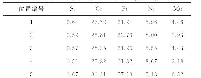 表1 試樣在圖3和圖4中不同位置的EDS分析結(jié)果(質(zhì)量分?jǐn)?shù))%