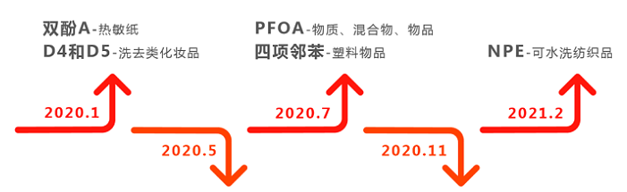從2021年2月3日起,在其正常的生命周期中,可以水洗的紡織品,如產品或產品的任意部分含有等于或超過0.01%的壬基酚聚氧乙烯醚(NPE),不得投放市場。