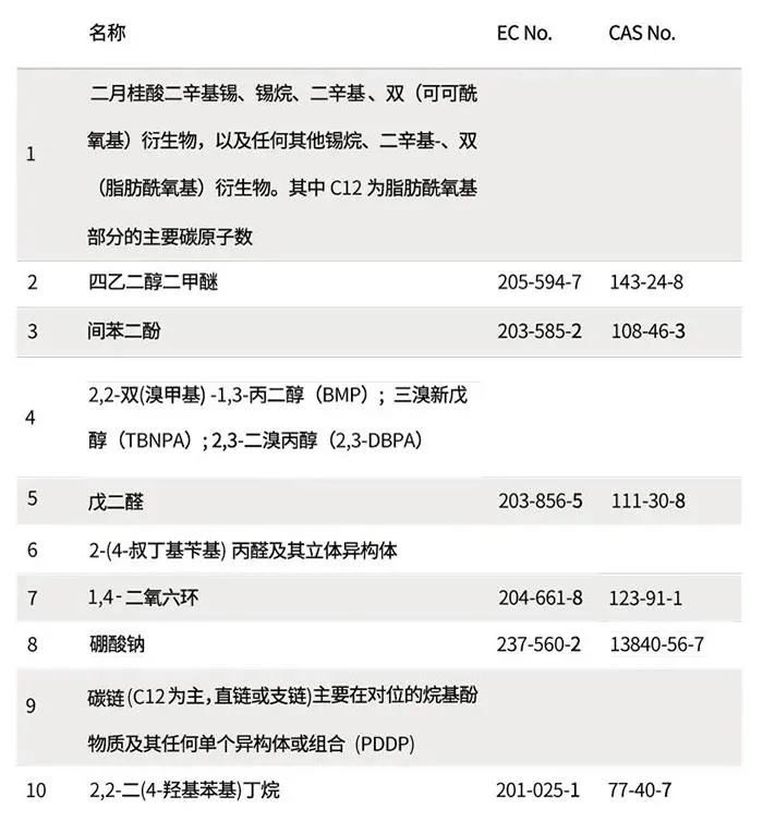 在2021-2022年度,HSE、英國(guó)環(huán)境署和有關(guān)當(dāng)局考慮將以下物質(zhì)列入高關(guān)注度物質(zhì)(SVHC)清單: