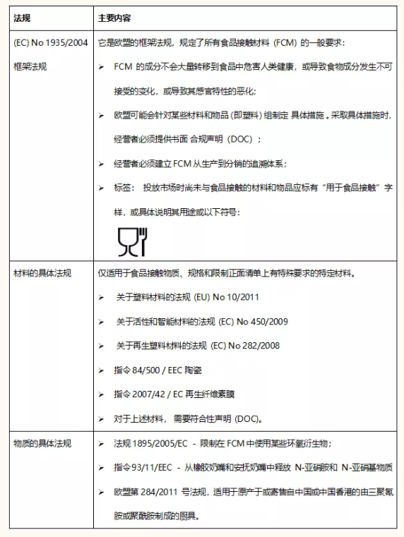 食品接觸材料的產(chǎn)品出口歐盟,不僅要滿足歐盟法規(guī)要求,出口到具體的歐盟成員國(guó)還需滿足成員國(guó)對(duì)食品接觸材料的特殊的法律法規(guī)要求。對(duì)于粘合劑,紙張,不銹鋼等歐盟沒(méi)有法規(guī)要求,可按歐盟成員國(guó)自己的要求和政府間組織-歐洲委員會(huì)(CoE)的要求。