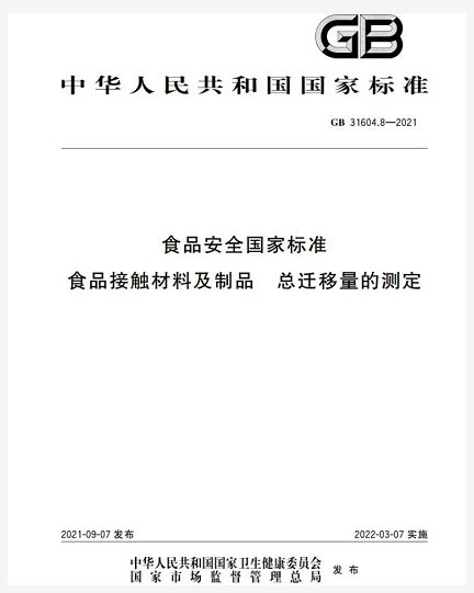 GB?31604.8-2021?食品安全國家標(biāo)準(zhǔn)?食品接觸材料及制品總遷移量的測定